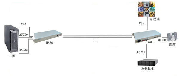 ◆E1传输VGA视音频信号应用方案拓扑图